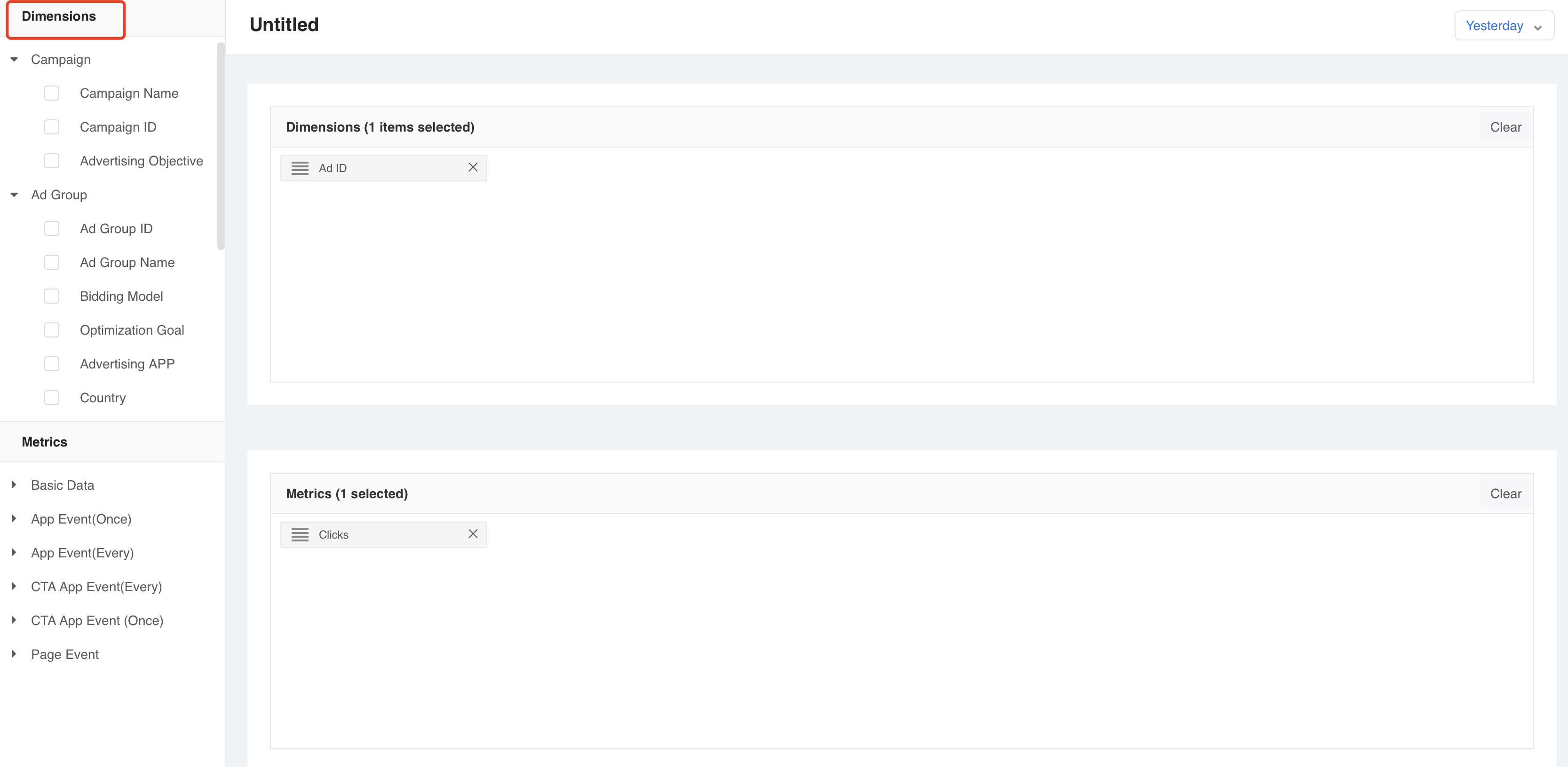 And by clicking "create" button, you will be redirected to a new page, where you can create and save reports with customized dimensions of data.
