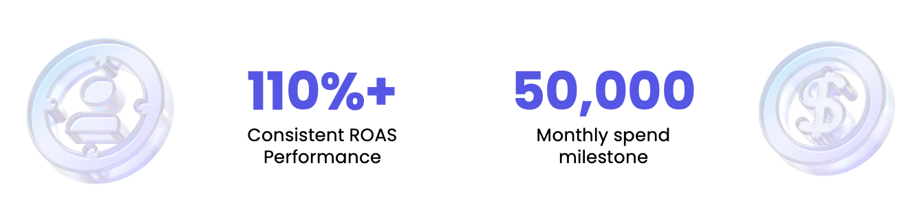 · Consistent 110 %+ ROAS, even at higher spend levels.